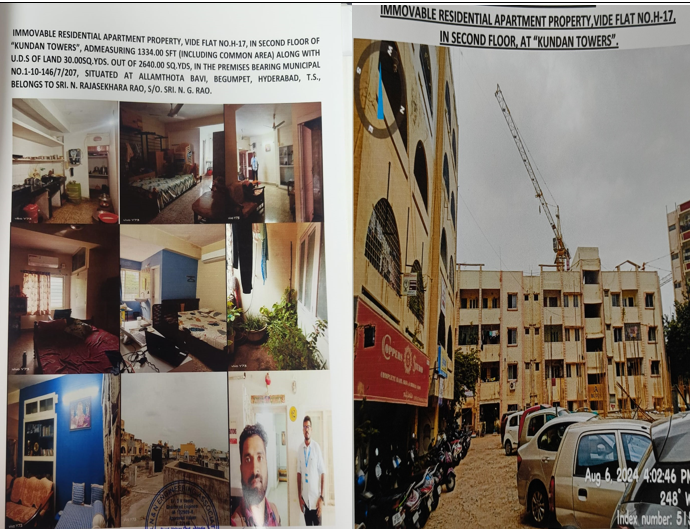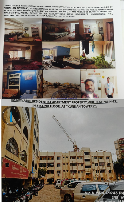 Property Details: All that the Flat No. H-17 in Block, 2nd floor in the complex known as “Kundan Tower” admeasuring 1334 Sq.ft (including common area) together with undivided share of land admeasuring 30 Sq.yds out of 2640 Sq.yds, in the Premises Bearing Municipal No. 1-10-146/7/207 situated at Allamthota Bavi, Begumpet, Hyderabad covered vide Sale Deed No. 38/2007 of SRO Secunderabad and MODTD No.2227/2016 SRO Banjara Hills. (At Site marked as Flat No. A-12). Bounded
