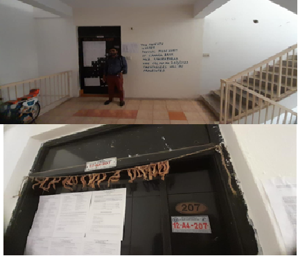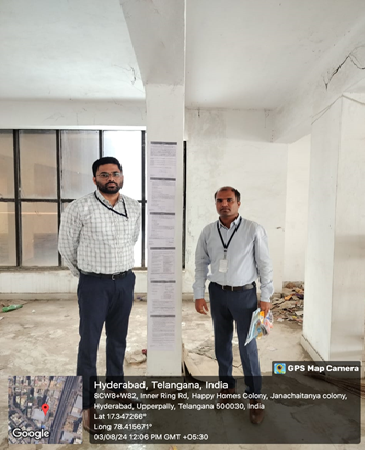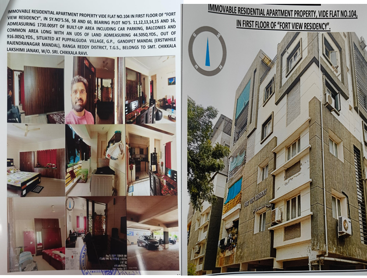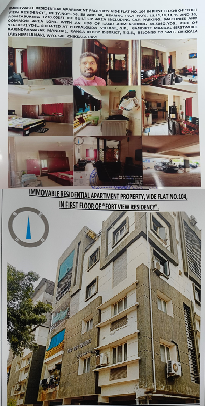 Property Details: All that the Semi-finished Flat No.104 in the 1st floor with columns, beams and roof, admeasuring 1730 Sq.ft of built up area including Car parking, Balconies and common area along with an undivided share of land admeasuring 44.5 Sq.yds out of total land of 916 Sq.yds on plots bearing no. 11,12, 13,14,15 & 16 in sy.no.56,58 & 60 in the building complex known as “Fort View Residency” situated at Puppalaguda village & G.P, Rajendranagar Mandal, R.R.Dist covered vide Rectification Deed No. 935/2008 of SRO Gandipet and MODTD No.2075/2016 SRO Balanagar.