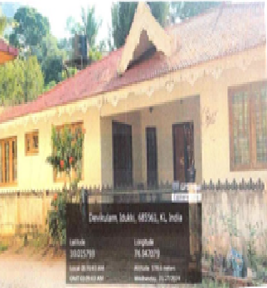 All part and parcel of land and Building having an extent of 1.60 Ares of land and Residential building (1334 sqft) in Survey No 695/3 of Karamuck Village, Padiyom desom,Thrissur Taluk, Thrissur District owned by Mrs. Shali K M W/o Vijayan.