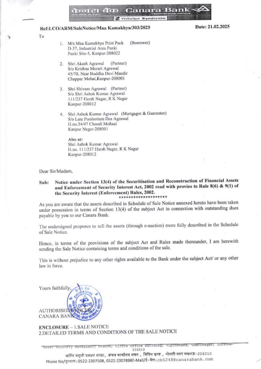 Property Details: House no.111/237-A, situated at 167.22 sqmt of entire Ground Floor in Premises no.111/237, Harsh Nagar, Kanpur Nagar.