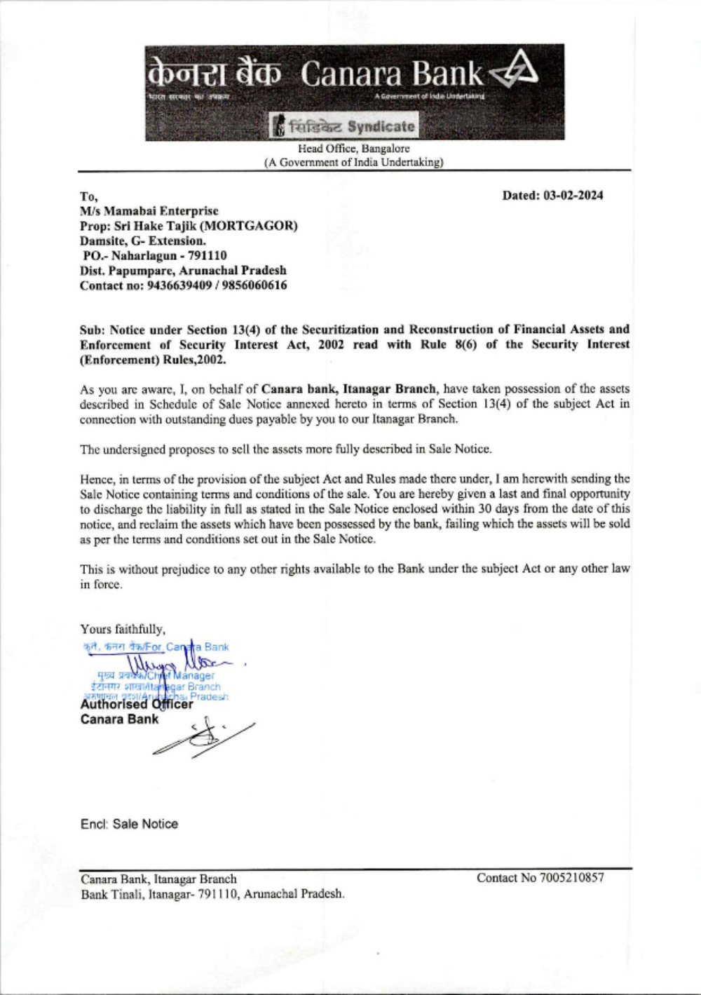 Property Details: All that part and parcel of the property of land and building under Govt. Land Allotment No. DC/LRB-0252/04 dated 26/12/2006 situated at Damsite, G-Extension, PO & PS.- Naharlagun, Dist.Papumpare., Arunachal Pradesh