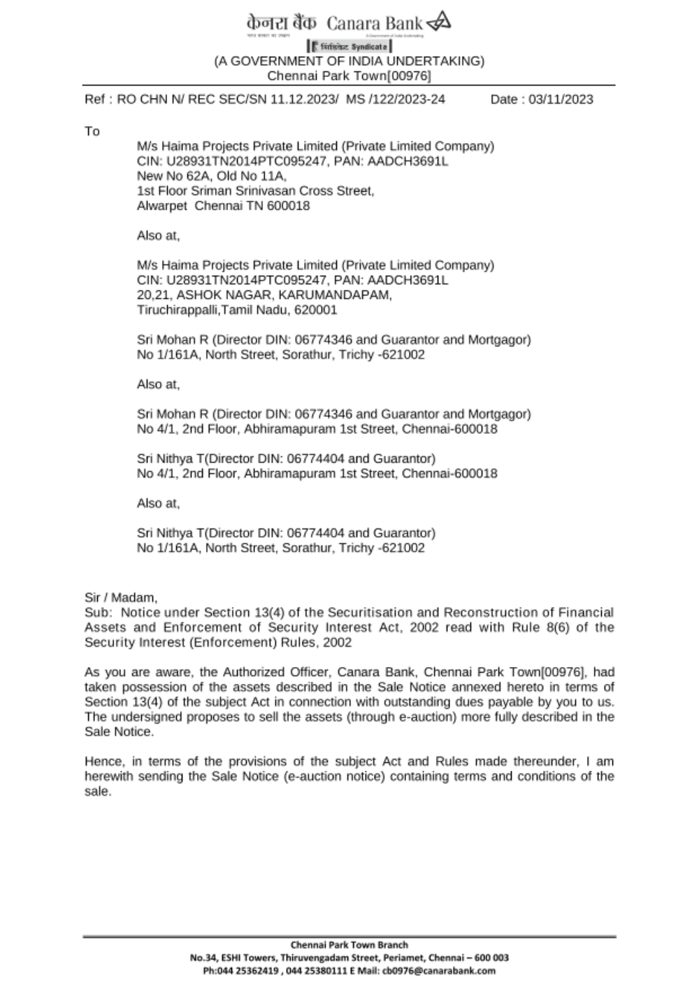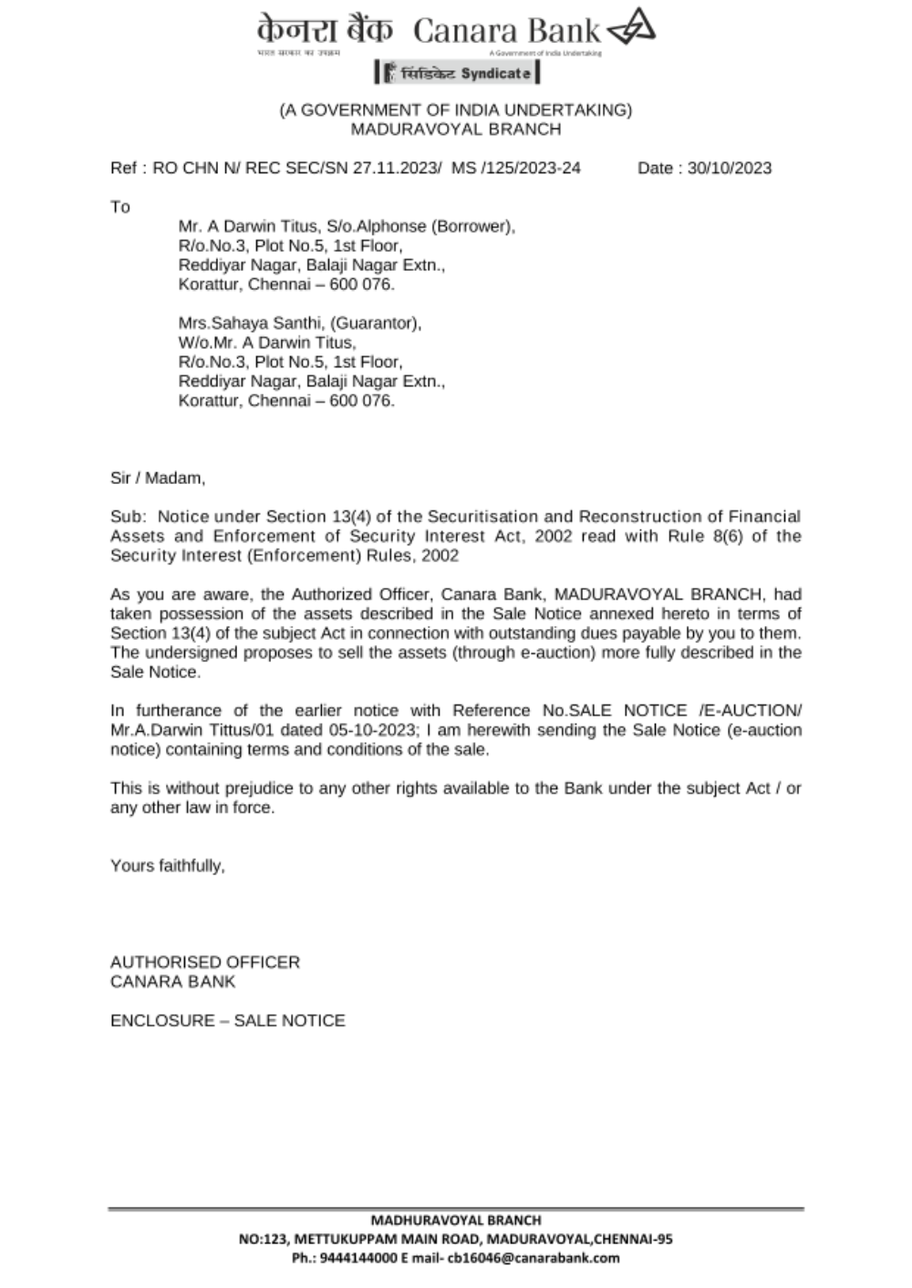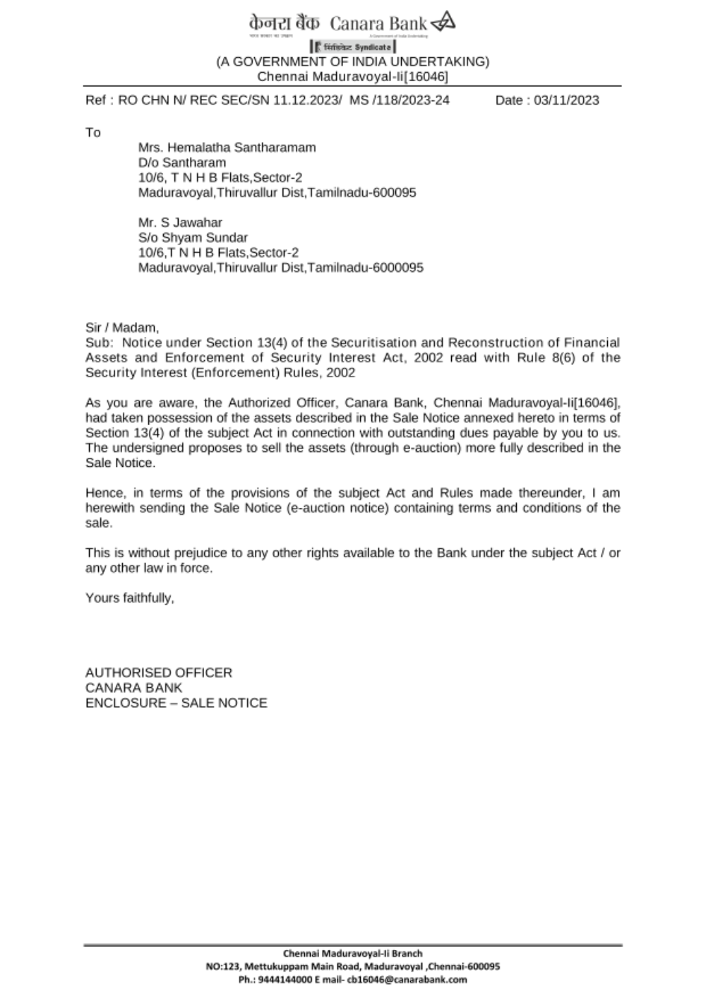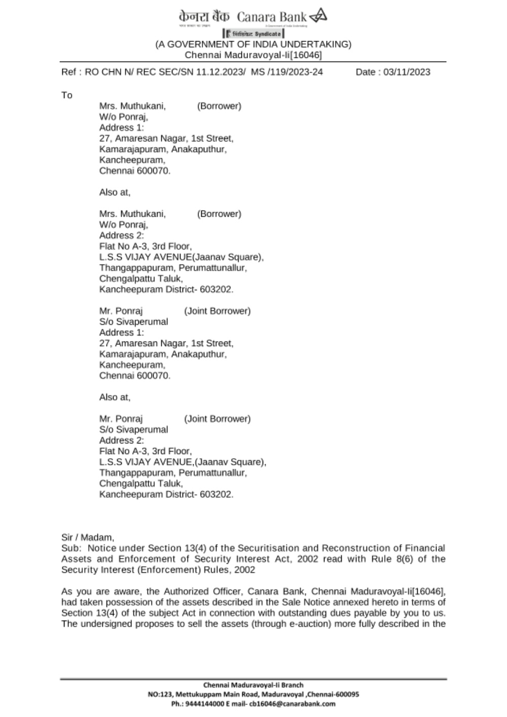 Date of E-Auction: 11.12.2023