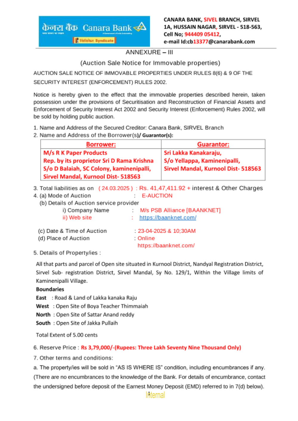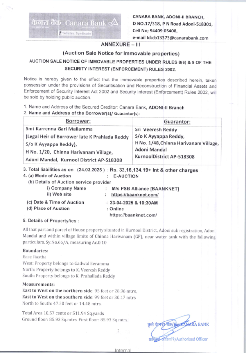 Date of E-Auction: 23-04-2025