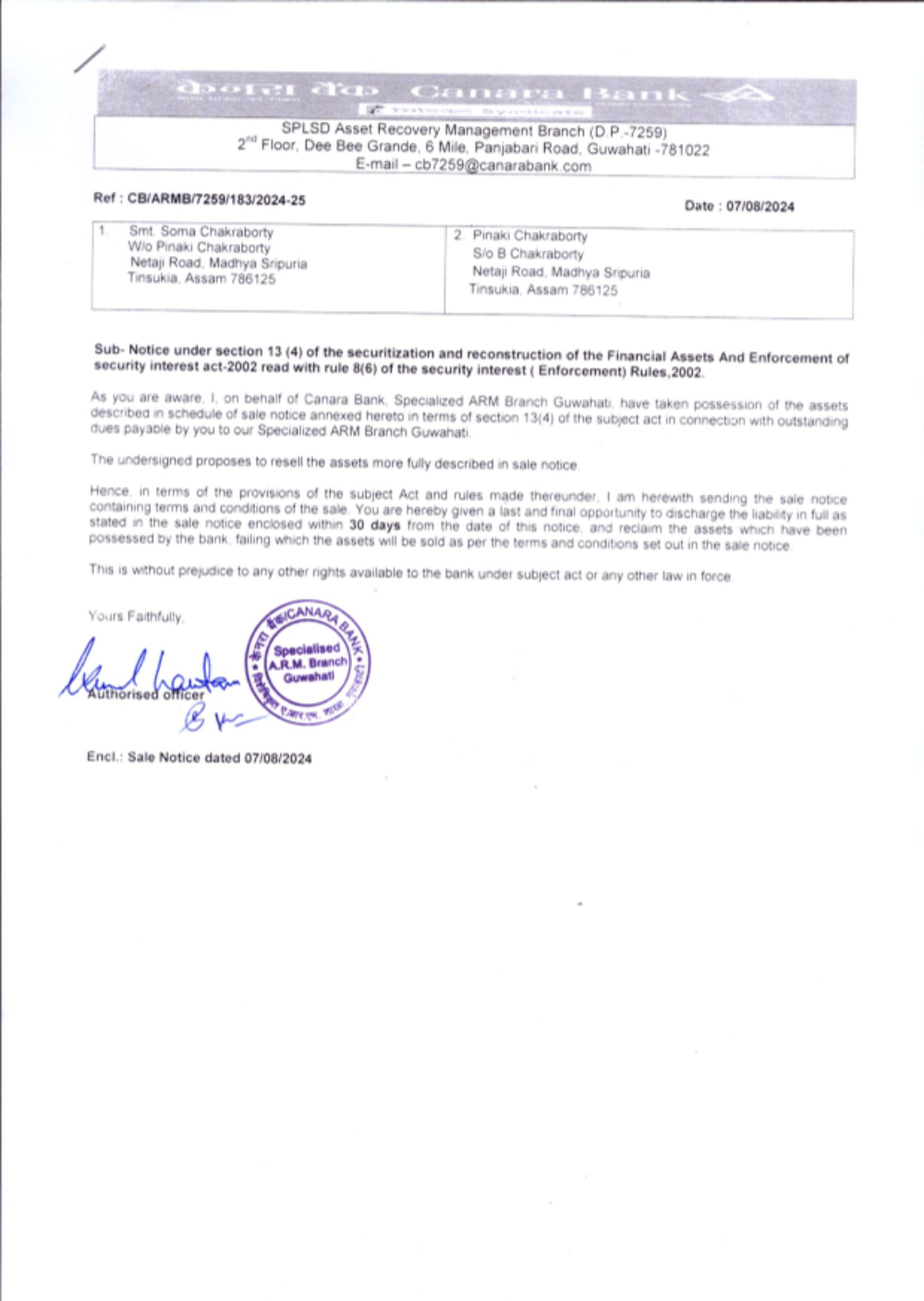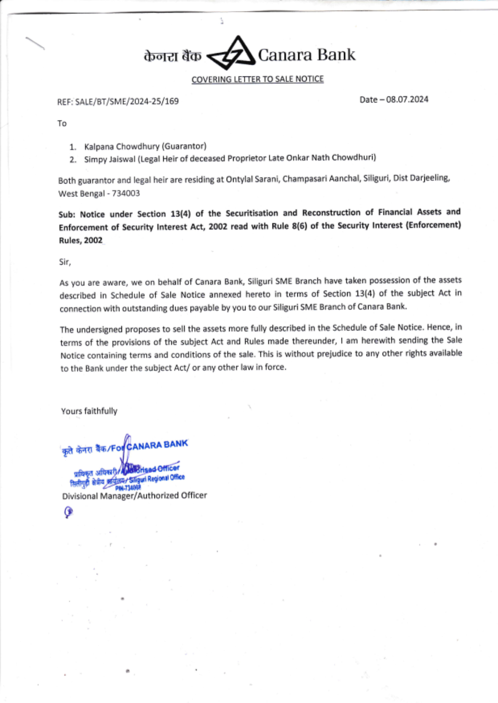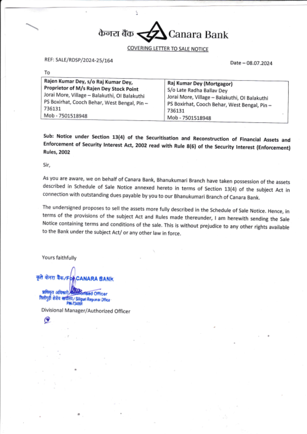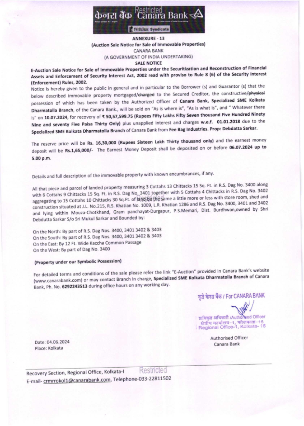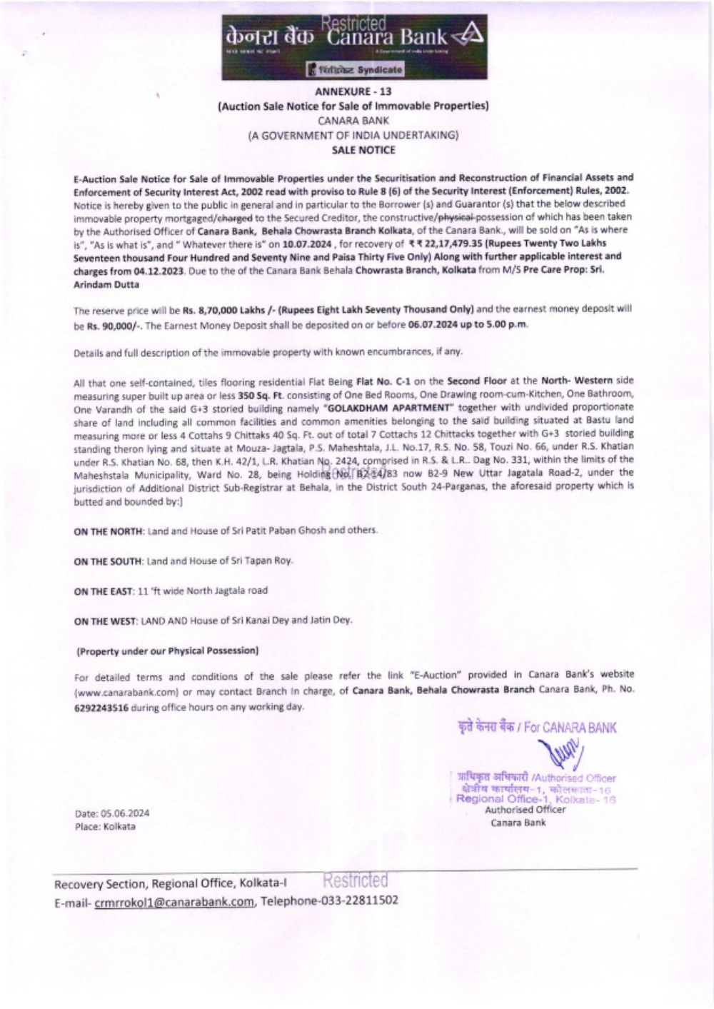 Date of E-Auction: 10.07.2024